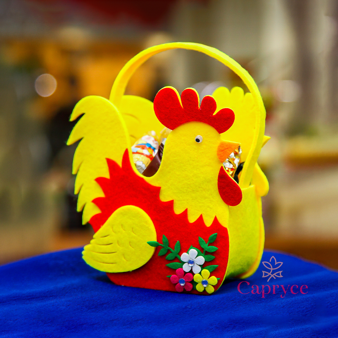 Coșuri cu decorațiuni și dulciuri de Paște, personalizate și în diverse dimensiuni.